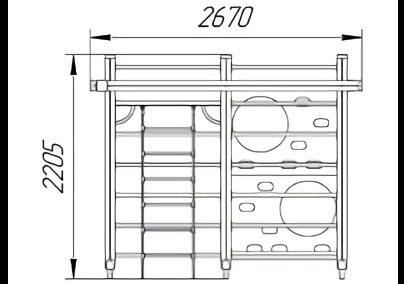 Размеры: Длина: 2670 мм. Ширина: 1530 мм. Высота: 2205 мм.
