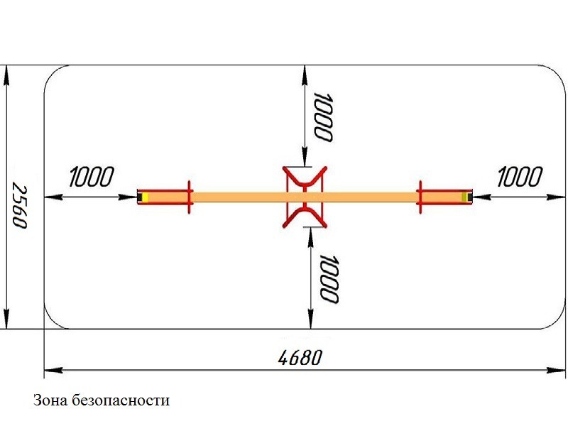 Балансир выполнен из клееного бруса сечением не менее 100мм*100мм. Сидения и